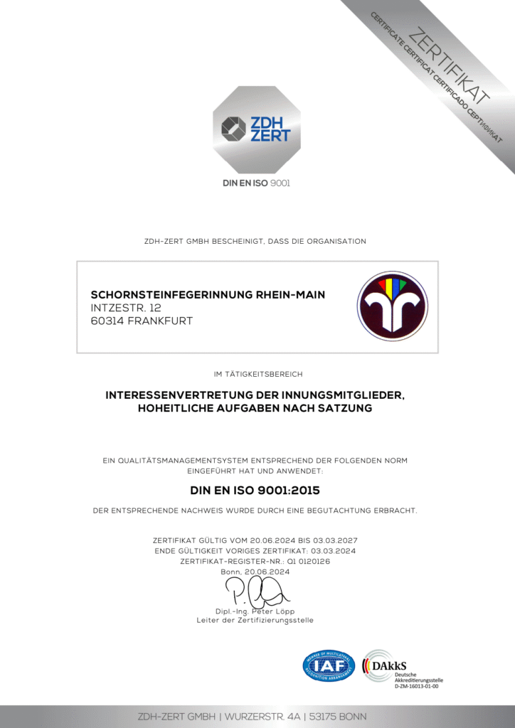 der Schornsteinfegerinnung Rhein-Main, Intzestr. 12,